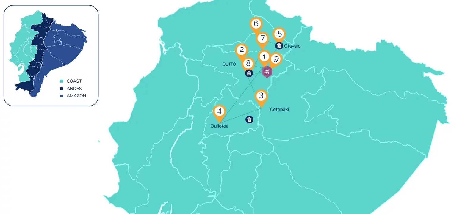 This 9-day Quito & Andes program is designed for guests who would like to experience the majestic Andes with its snow-capped mountains and condors. With this program, you will also get to know the local indigenous culture, which has its roots in the Incas. There are some sporty activities like hiking and biking but you will have comfort at night when you will stay in Haciendas or at a comfortable hotel in Quito. Enjoy our 9-Day Quito & Andes Adventure!