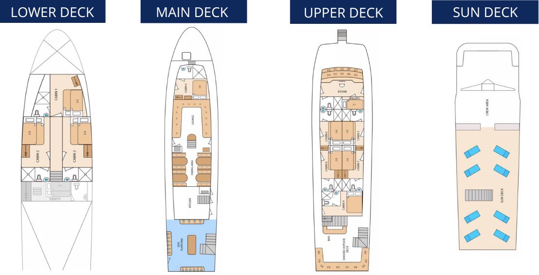 The Galapagos Aqua Cruise is the ideal boat for divers and adventure lovers of all ages! It offers a unique combination of both liveaboard diving safaris, including the best diving sites of the archipelago, as well as naturalist cruises for seeing what makes the islands themselves so special, something that should not be missed when visiting the Galapagos Islands. With the Galapagos Aqua Cruise, combine the incomparable diversity above and under the waves at truly the best value available! Get ready to visit the Galapagos Islands and start a unique experience. With Rebecca Adventure Travel’s Tourist Class Cruises, you will be able to explore Galapagos in a simple but significant way.