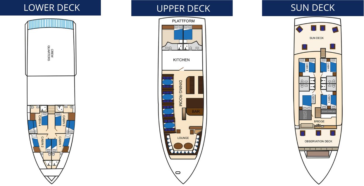 Aboard the Letty Galapagos Yacht, indulge in the finer aspects of sea travel with gourmet dining experiences, featuring local and international cuisine prepared by skilled chefs. Enjoy panoramic views of the ever-changing landscapes from the sundeck or unwind in the tastefully decorated lounge. The yacht’s experienced guides enhance your journey with insightful excursions, bringing you face-to-face with the Galapagos’ unique wildlife and pristine ecosystems. Whether you’re snorkeling alongside sea lions or hiking through ancient volcanic landscapes, the Letty offers a perfect blend of comfort, adventure, and exclusivity.