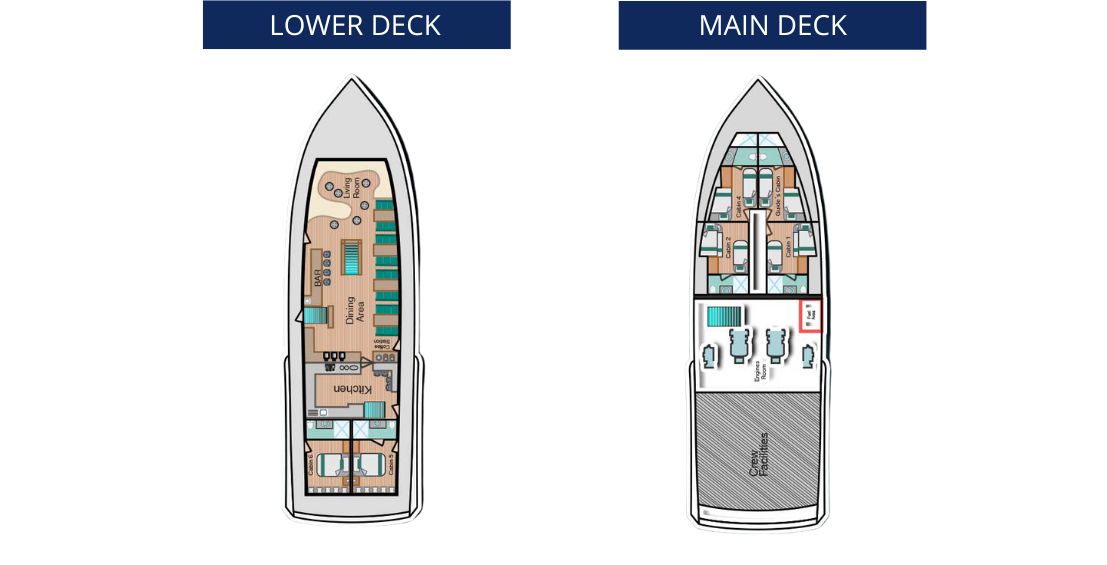 Accommodation:Double or single cabins.