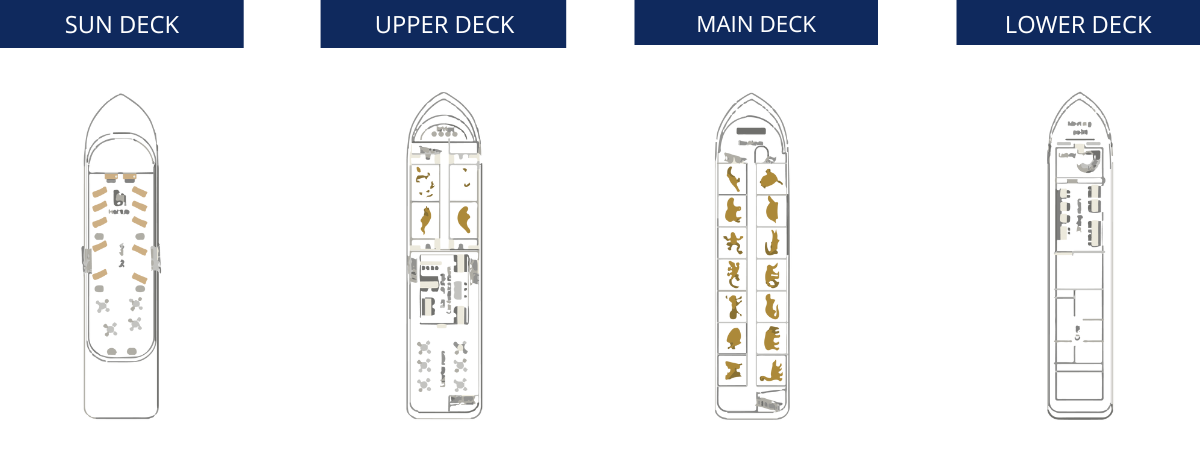 | Cabins | 18 cabins: 4 deluxe cabins and 14 standard cabins with french balconies. |