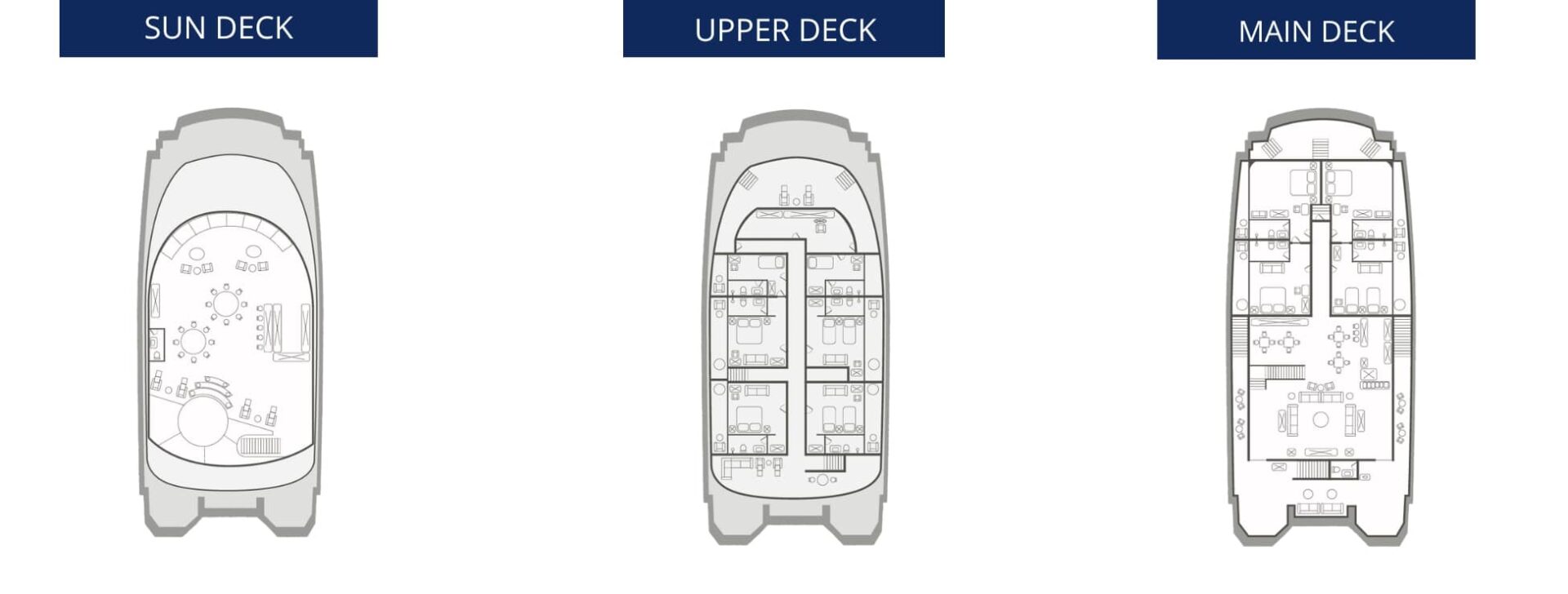 The Galapagos Elite Cruise was specifically designed for sailing the sapphire waters of the Enchanted Islands. A sleek, twin-hulled catamaran, it will provide its guests with a steady, safe cruise without the rocking and swaying. In addition to better stability, the design of the Elite allows for more space for everything on board, including social areas and suites. Guests of all ages will enjoy the ample, semi-covered sky deck, the alfresco dining area, and the cozy bar salon. Needless to say, the Galapagos Elite will feature state-of-the-art navigation computers and safety equipment: safety and reliability are essential parts of any Galapagos luxury experience.