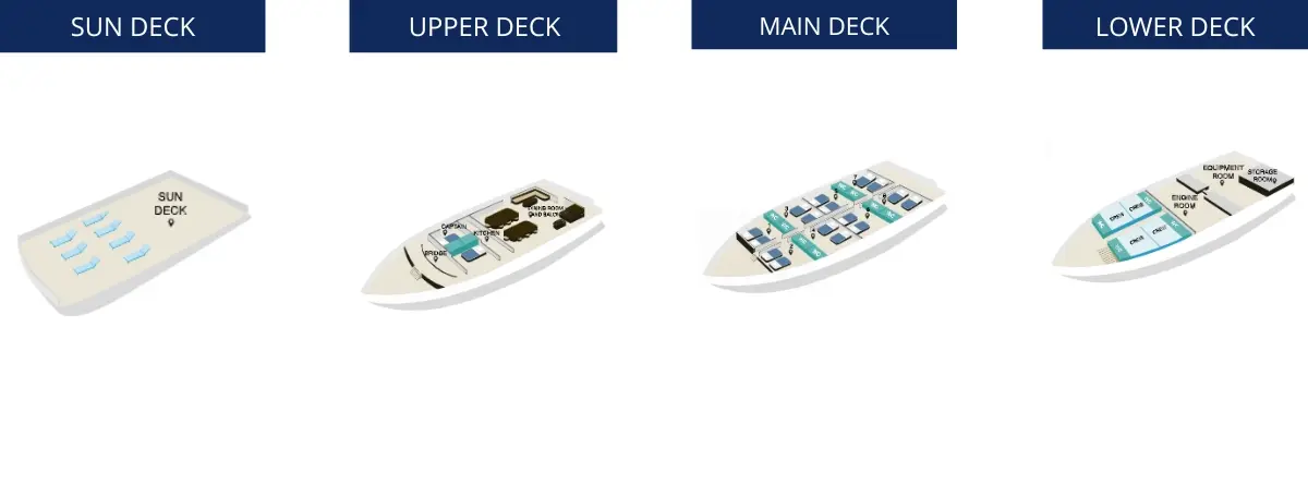 The Galapagos Angel Cruise was totally refurbished in the summer of 2013 and now has a capacity of 16 passengers. The high quality of craftsmanship was maintained while the amount of space and comfort level was increased. The 8 double cabins are now on the main deck and include large picture windows, private bathrooms, individual air conditioning, and the option to have twin beds or a double bed. The Galapagos Angel Cruise offers an undeniable charm and the best experiences in nature! Our experienced guides show our exceptional itineraries without rushing, but with enough time, knowledge, and passion. We are complete with excellent service, comfortable accommodation, great food, and a professional crew.